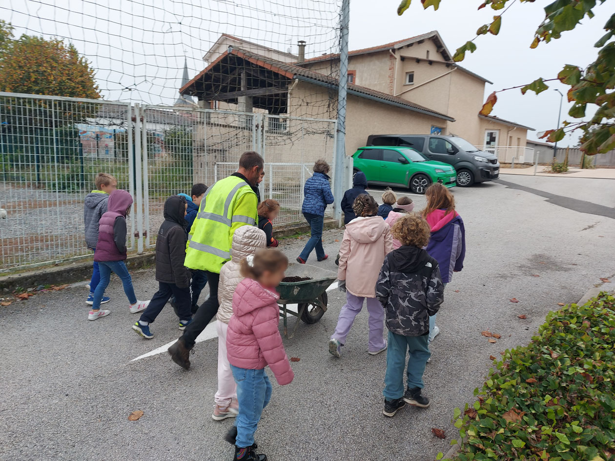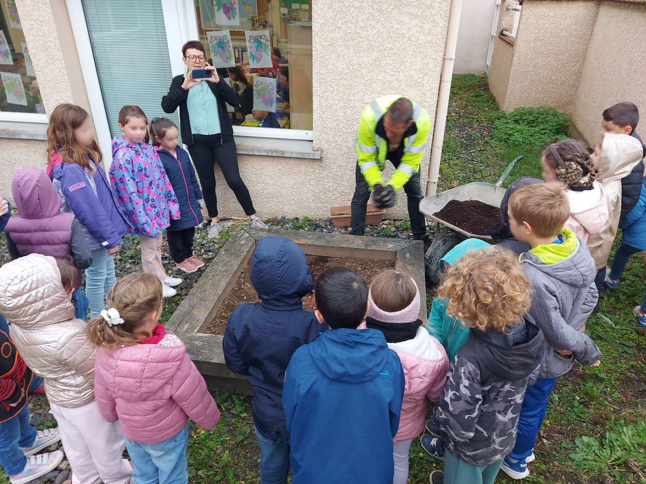 Le vendredi 10 octobre, c’était l’effervescence au composteur collectif à Maringes ! Les enfants de l’école, accompagnés de M. Carret – agent technique et référent du site, ont récupéré l’or noir produit grâce au composteur collectif du village. Ces écoliers, déjà sensibilisés au fonctionnement du compostage, ont découvert cette noble matière produite par les biodéchets – qui nourrira bientôt les fleurs, près de l’école. La boucle est bouclée, bravo pour cette belle initiative !