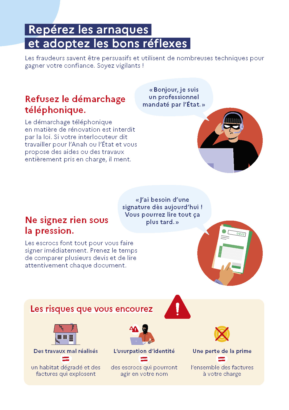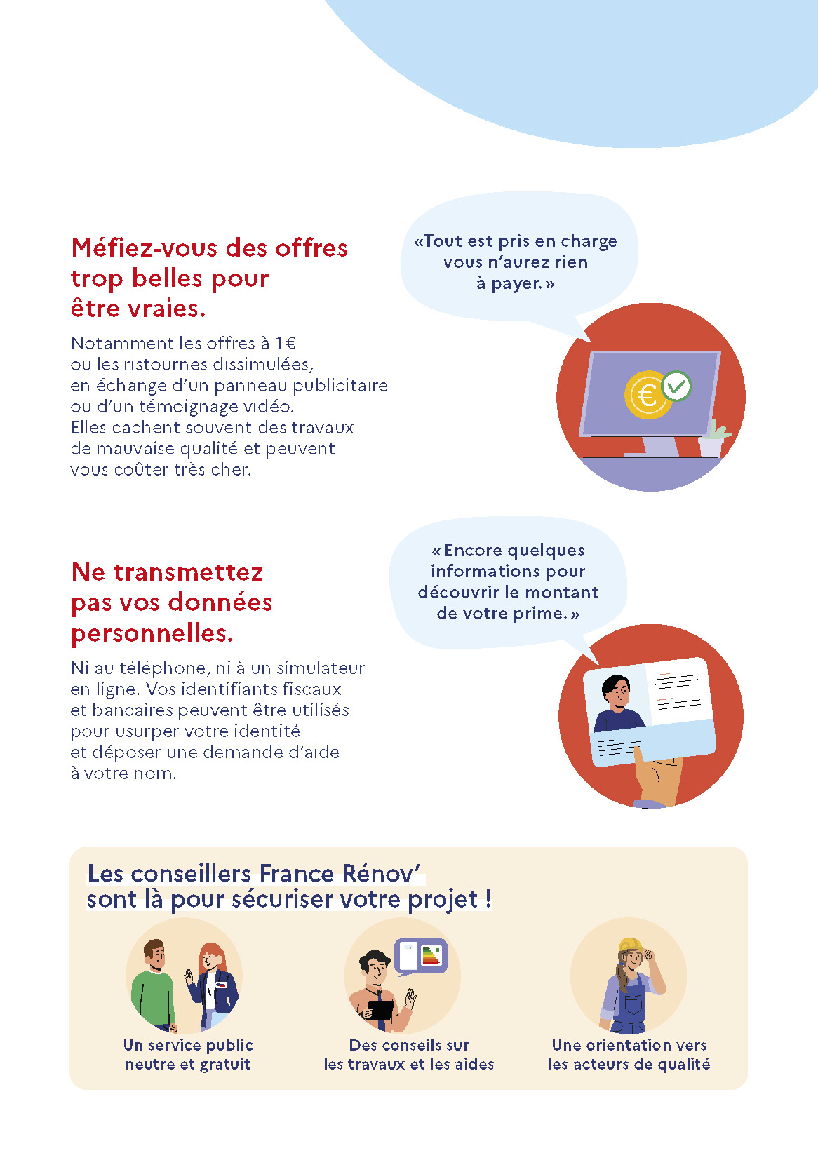 Travaux de rénovation énergétique - entre les offres trop belles pour être vraies et les pressions commerciales, la vigilance est de mise. Pour vous protéger des arnaques, prenez le temps de réfléchir.